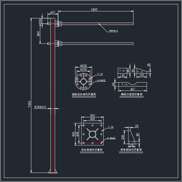 标识牌7米双横臂CAD001
