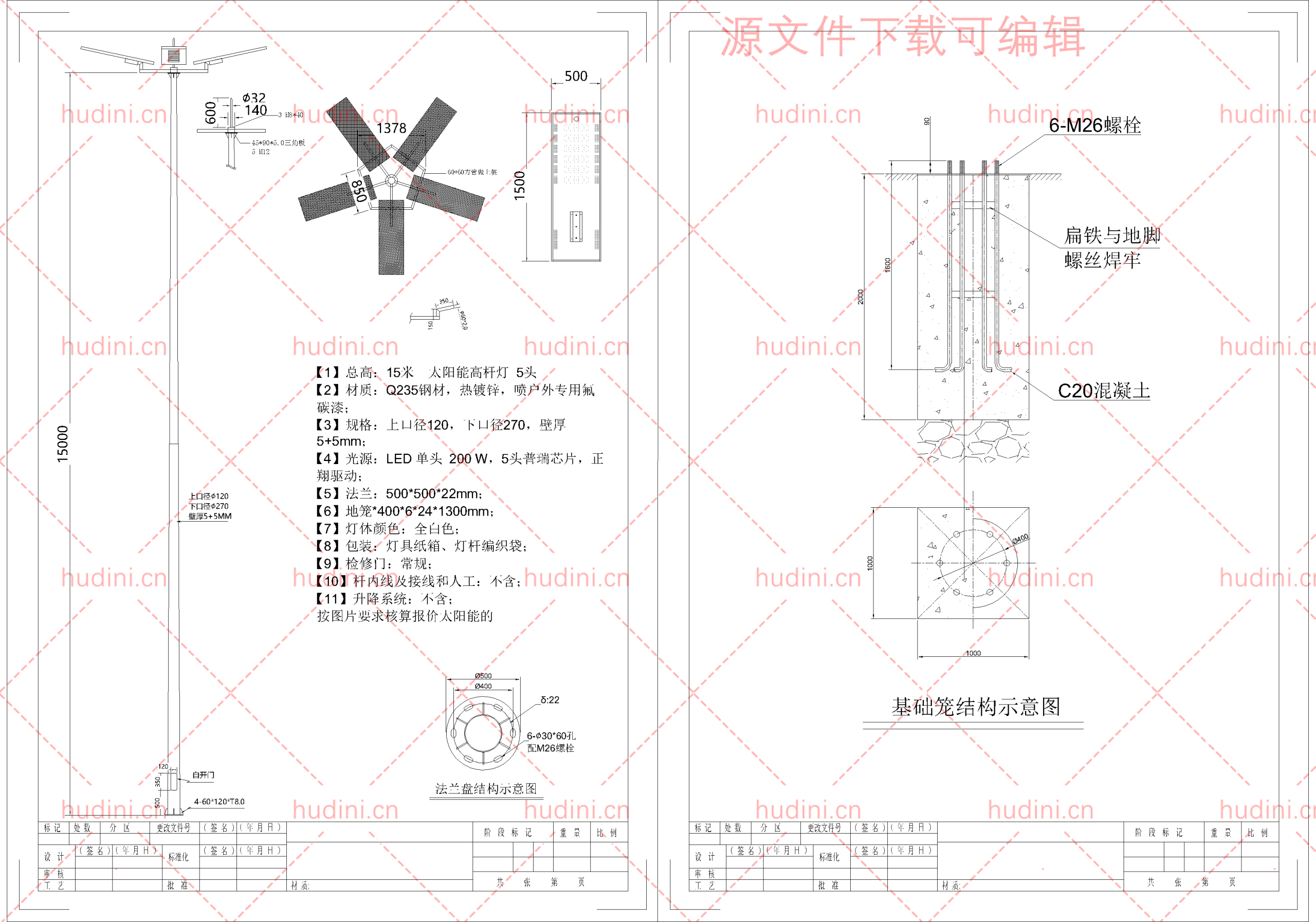 15米太阳能中杆CAD001